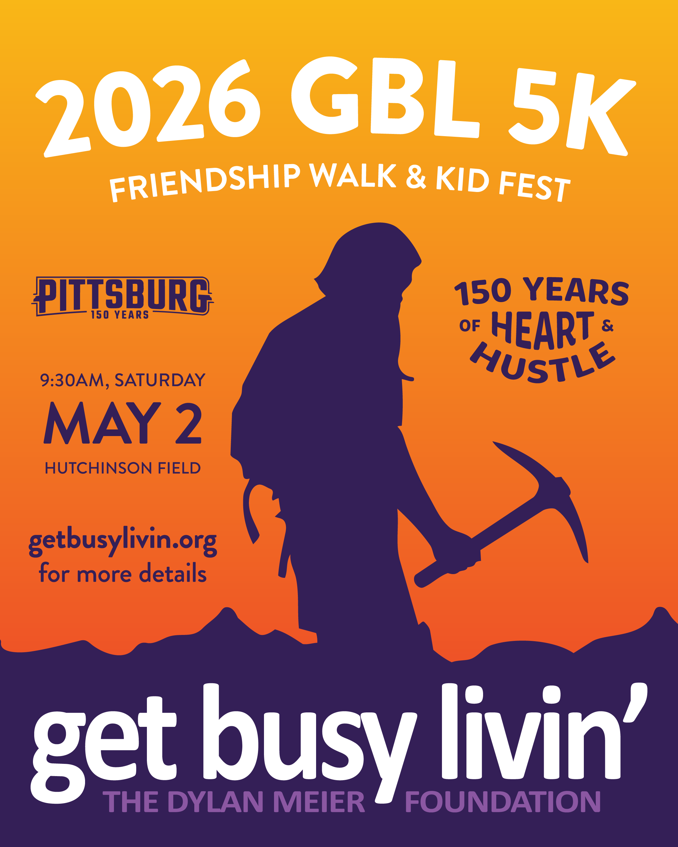 This event honors the life and spirit of Dylan Meier, who still reminds us to live each day to the fullest. We are so excited to keep spreadin’ the message. Participants will start and finish at Hutchinson Football Field located next to Pittsburg Middle School. Whether you are trying out this 5K thing for the first time or you’re a seasoned vet, this will be a grateful day for all. Let’s all get together and get our Saturday started off right, with friends, family, fitness and inspiration. GET BUSY LIVIN’!!
